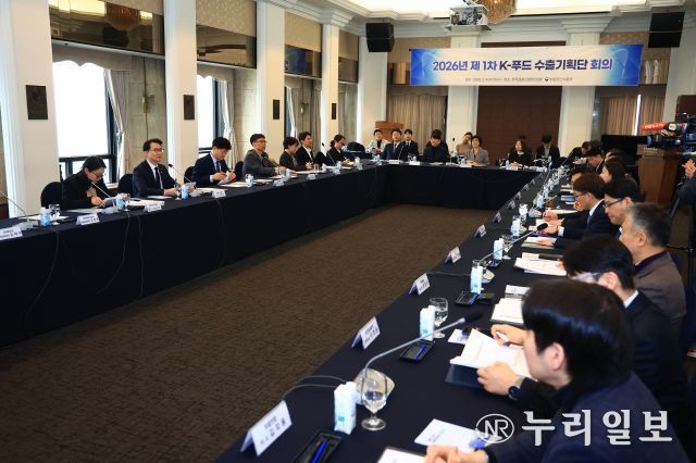 (누리일보) 농림축산식품부는 2월 4일 오전, 서울 한국프레스센터에서 2026년 제1차 ‘K-푸드 수출기획단’ 회의를 개최했다. 수출기획단은 지난해 글로벌 K-푸드 비전 선포식(12.23)에서 발족된 민·관 협의체로 이날 회의에는 관계부처 및 유관기관 각 7명, 수출·콘텐츠·물류 업계 민간위원을 포함하여 총 29명이 참석했다.