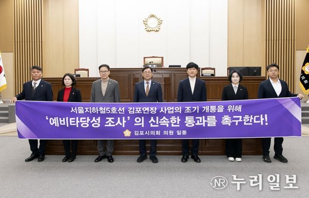 (누리일보) 김포시의회는 5일 열린 제265회 임시회 제2차 본회의에서 시의원 14명이 공동으로 발의한 ‘서울지하철5호선 김포 연장사업 신속 예비타당성 조사 통과 촉구 결의안’을 채택했다.