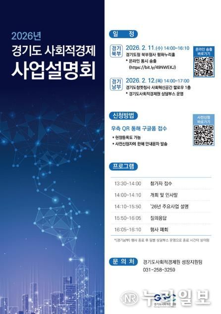 (누리일보) 경기도사회적경제원은 오는 11일과 12일 양일간 경기 북부와 남부에서 ‘2026년 경기도 사회적경제 사업설명회’를 연다.