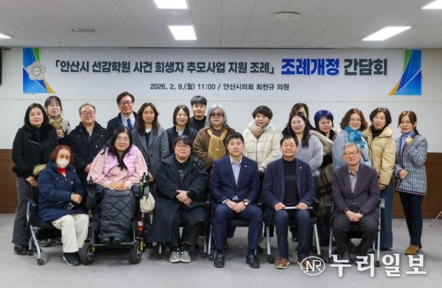 (누리일보) 안산시의회 최찬규 의원은 2월 9일 안산시의회 3층 대회의실에서 ‘안산시 선감학원 사건 희생자 추모사업 지원 조례’ 일부개정을 위한 간담회를 개최했다.
