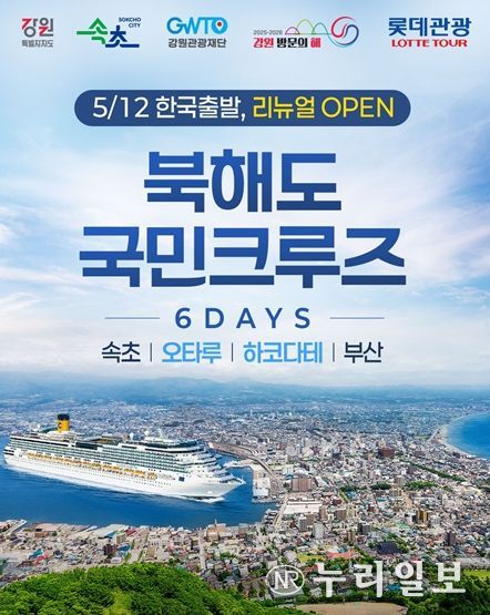 (누리일보) 강원관광재단은 크루즈 산업에 대한 도민 인식을 높이기 위해 강원특별자치도, 속초시와 함께 ‘2026 강원특별자치도민 크루즈 체험단’ 운영 계획을 마련해 오는 2월 13일부터 27일까지 체험단 참가 신청을 받는다고 밝혔다.