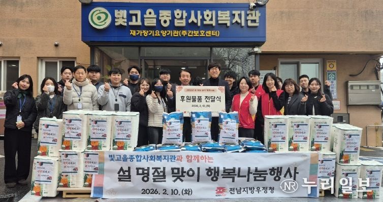 (누리일보) 전남지방우정청은 다가오는 설 명절을 앞두고 지난 10일 동구 소재‘빛고을종합사회복지관’을 찾아 소외이웃을 위한 설 맞이 봉사활동을 펼쳤다.