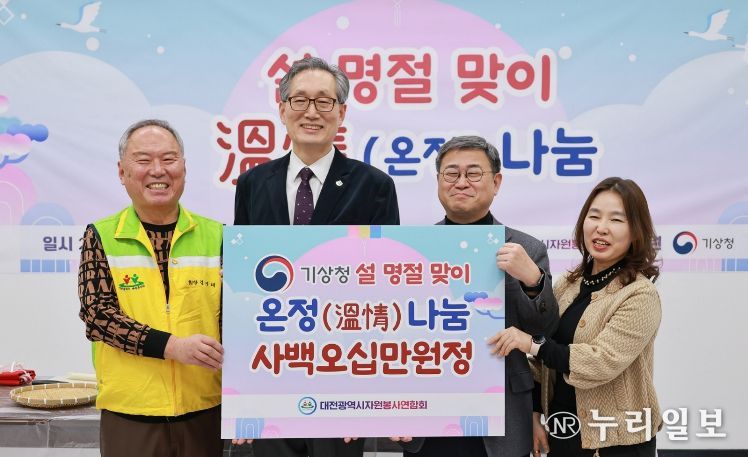 (누리일보) 대전시자원봉사연합회는 10일 기상청 소속 공무원 봉사회(단비회)의 후원을 받아 설 맞이 사랑의 온정(溫情)나눔 행사를 진행했다.