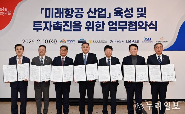 김태흠 지사는 10일 태안문화예술회관에서 성일종 국회의원, 이정석 국방과학연구소 부소장, 대한항공·LIG넥스원·한국항공우주산업(KAI)·한화에어로스페이스 등 4개 참여 기업 관계자가 참석한 가운데 미래항공 산업 육성 및 투자 촉진을 위한 업무협약을 체결했다
