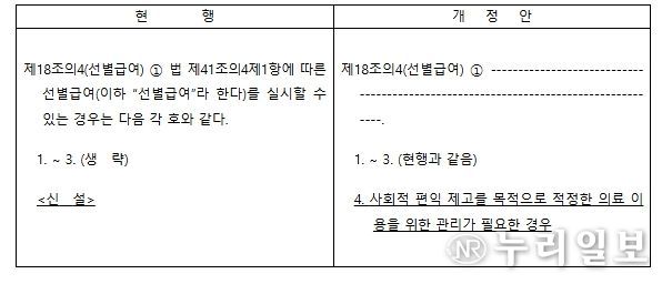 (누리일보) 보건복지부는 2월 19일 관리급여 제도의 법적 근거를 마련하는 내용의 '국민건강보험법 시행령' 일부개정령안이 공포됐다고 밝혔다.