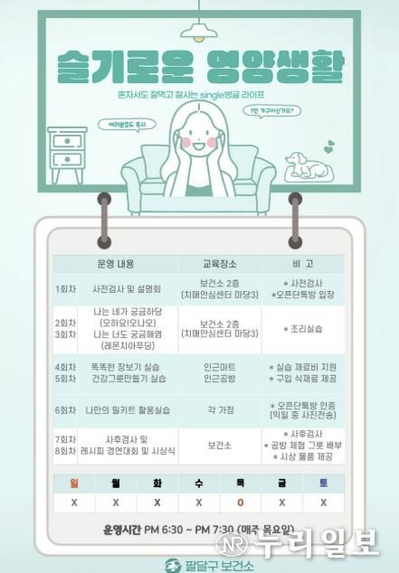 (누리일보) 수원시 팔달구보건소가 1인 가구와 건강 취약계층을 대상으로 영양 관리 프로그램 ‘나를 위한 한 끼, 슬기로운 영양생활’을 운영한다.