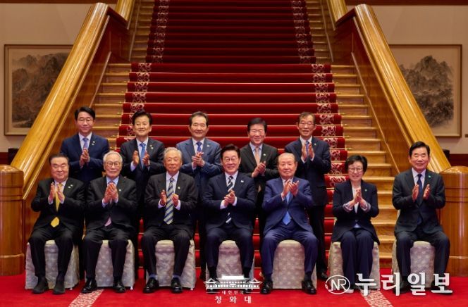 (누리일보) 이재명 대통령은 오늘 청와대 본관에서 1시간 45분 동안 민주당 상임고문 열 분과 오찬 간담회를 가졌다. 참석자는 권노갑 고문과 김원기·임채정·문희상·김진표·정세균·박병석 전 국회의장, 한명숙 전 총리, 정동영 통일부 장관, 이용득 고문이다.