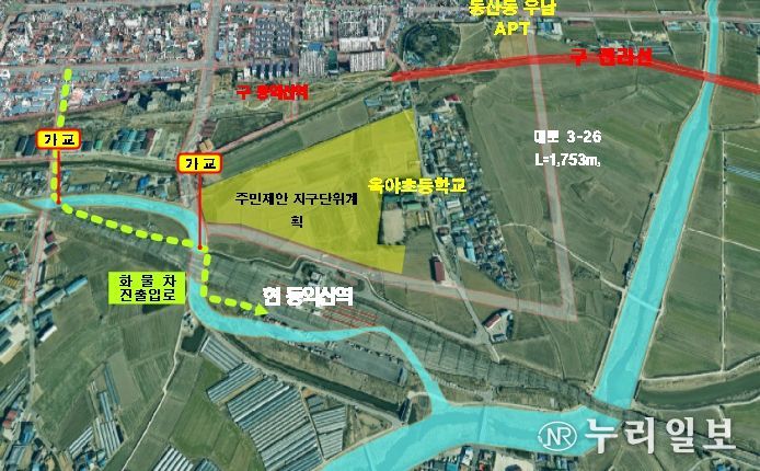 동익산역이 2012년 4월 30일 익산-신리 간 복선전철 사업으로 현 위치(옛둑2길 84)로 신축이전하면서 대형 화물트레일러들이 나룻가 마을안길과 가설 철교를 운행하게 됐다.