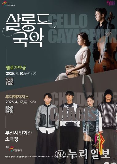 (누리일보) (재)부산문화회관(대표이사 차재근)은 오는 4월 10일, 4월 17일 오후 7시 30분, 부산시민회관 소극장에서 '살롱 드 국악 – 첼로가야금, 추다혜차지스'를 선보인다.