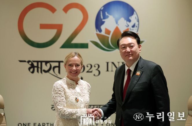 (누리일보) G20 정상회의 참석을 위해 인도 뉴델리를 방문 중인 윤석열 대통령은 오늘(9. 10 일, 현지시간) 오후 '조르자 멜로니(Giorgia Meloni)'이탈리아 총리와 정상회담을 가졌다.