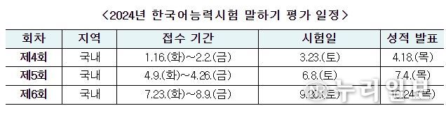 아울러, 한국어 의사소통 능력 평가 강화를 위해 2022년 도입된 말하기 평가는 인터넷 기반 시험(IBT)으로 3회 시행되며, 접수 기간, 시험일 및 성적 발표일은 다음과 같다.