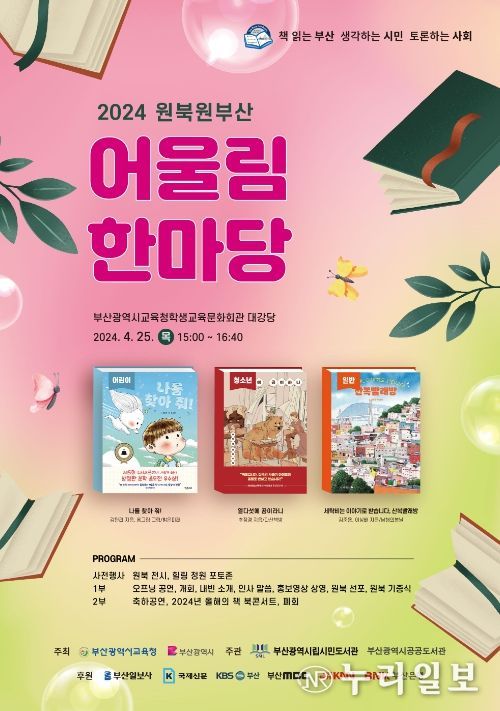 (누리일보) 부산시교육청 시민도서관은 오는 4월 25일 오후 3시 부산학생교육문화회관 대강당에서 부산시민 550명을 대상으로 ‘원북원부산 어울림한마당’을 개최한다.