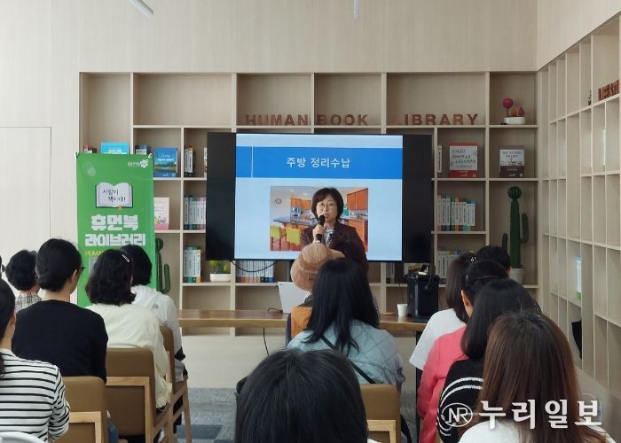 이번 ‘알면 쉬워지는 정리수납’ 강좌는 시민 강사로 활동하고 있는 최영란 휴먼북이 강사로 나서 ‘우리집도 다이어트가 필요하다’라는 주제로 직접 시연을 하며 정리수납을 설명했다.
