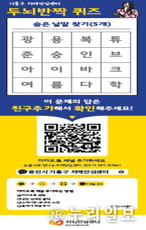 (누리일보) 용인특례시 기흥구보건소 치매안심센터는 치매에 대한 최신 정보를 신속하게 전달하기 위해 카카오톡 채널을 개설해 운영 중이라고 22일 밝혔다.