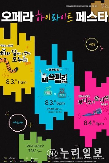 (누리일보) 고양문화재단은 예술경영지원센터가 주최하고, 문화예술관광부가 후원하는 2024 공연유통협력지원 선정작인 예술은감자다의 새로 태어난 명작오페라 3편 '오페라 하이라이트 페스타'를 8월 3일~4일 양일간 3회를 고양어울림누리에서 선보인다. 재미와 감동만 쏙쏙 모아, 온 가족이 함께 즐기는 세편의 오페라를, 2024년 8월 고양어울림누리를 시작으로 부산 금정문화회관까지 총 6회의 공연을 올린다.
