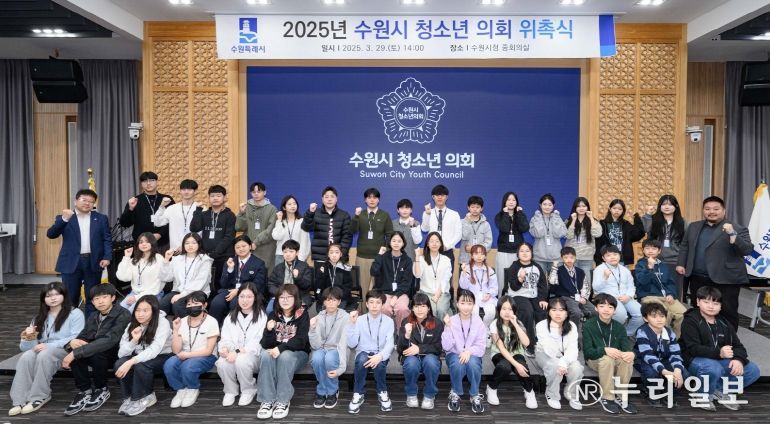 (누리일보) 수원시는 29일 시청 중회의실에서 ‘2025년 수원시 청소년 의회’ 청소년의원 위촉식을 열고, 45명에게 위촉장을 수여했다.