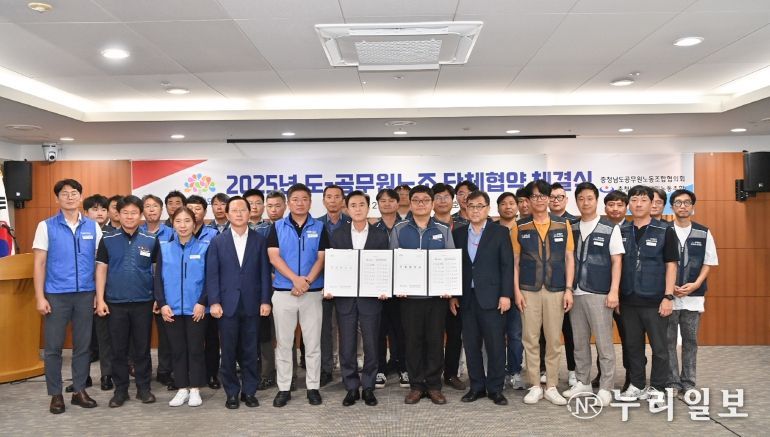 (누리일보) 충남도는 21일 도청 상황실에서 충청남도공무원노동조합, 충청남도공무원노동조합협의회와 상생과 협력을 위한 단체협약을 체결했다.