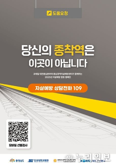 충남광역자살예방센터, 코레일 대전충남본부와 진행하는 이번 캠페인은 ‘당신의 종착역은 이곳이 아닙니다’라는 메시지를 통해 생명 존중, 자살 예방, 철도 안전에 대한 가치를 널리 알릴 계획이다.