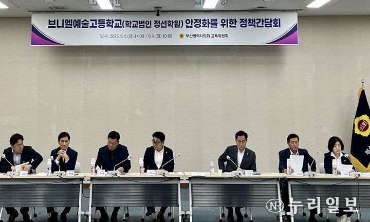 (누리일보) 부산광역시의회 교육위원회는 9월 5일과 8일 양일간 시의회 대회의실에서 브니엘예술고등학교(학교법인 정선학원) 안정화 방안을 논의하기 위한 정책간담회를 개최했다.