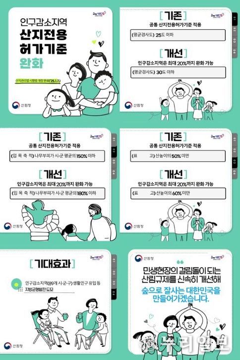 그 밖에 인구감소지역의 산지전용허가 기준 완화, 임업정책자금 신청 접수지역 확대 및 국립수목원 완충지역 내 농림수산물 판매시설 허용, 소나무류 생산확인표 발급 방법 개선 등을 산림분야 규제혁신 대표사례로 선정했다.
