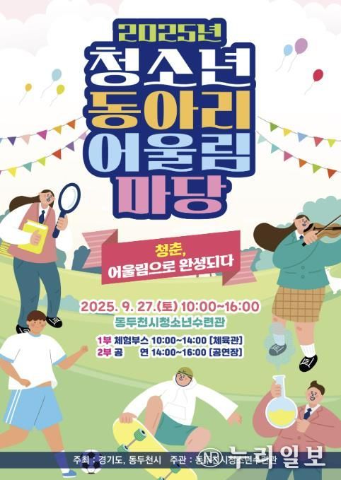 (누리일보) 동두천시는 오는 9월 27일 동두천시 청소년수련관(지행로 95)에서 '2025년 동두천시 청소년 동아리 어울림마당'을 개최한다고 밝혔다.