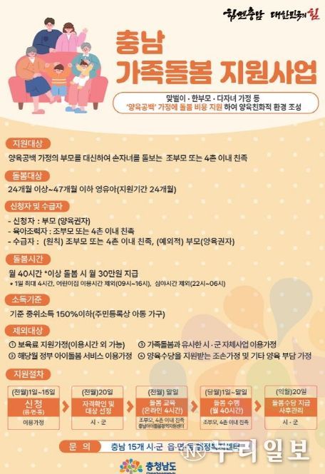 도는 다음달 1일부터 ‘충남형 가족돌봄 지원사업’을 신청받는다고 24일 밝혔다.