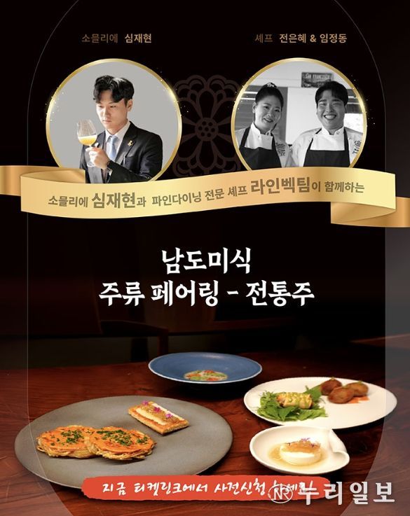회당 100명 규모로 마련된 이번 프로그램은 고흥 유자주, 강진 코리안 화이트, 목포 밀물탁주, 담양 추성주, 나주 나과 등 지역을 대표하는 전통주를 엄선해 남도의 7가지 다양한 요리와 짝지어 선보인다.