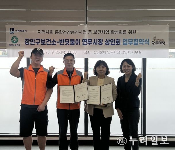 (누리일보) 수원시 장안구보건소는 25일 반딧불이 연무시장 상인회와 ‘지역사회 통합건강증진사업 등 보건사업 활성화’를 위한 업무협약을 체결했다.