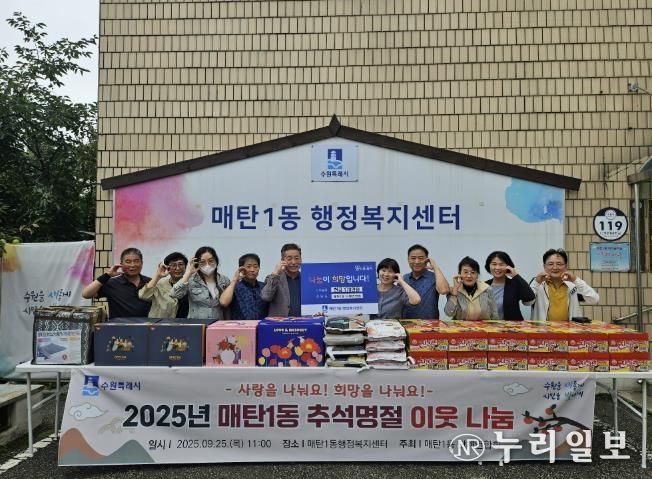 (누리일보) 25일 수원특례시 영통구 매탄1동은 추석 명절을 맞이하여 관내 저소득층 300여 세대에 후원물품을 전달하는 이웃돕기 나눔 전달식을 개최했다.