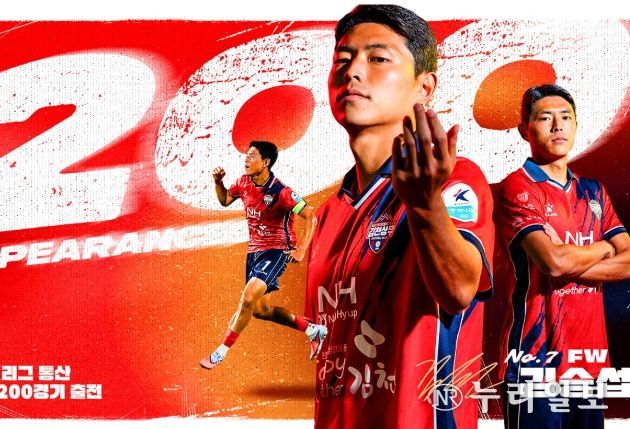 (누리일보) 김천상무프로축구단의 주장 김승섭이 9월 20일, ‘하나은행 K리그1 2025’ 30R 전북전에 출전하며 K리그 통산 200경기 출전을 달성했다.