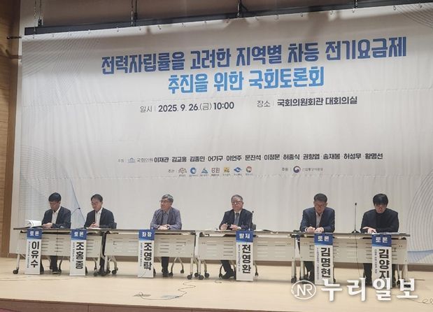 (누리일보) 9월 26일 국회의원회관 대회의실에서 '전력자립률을 고려한 지역별 차등 전기요금제' 국회 토론회가 개최됐다.