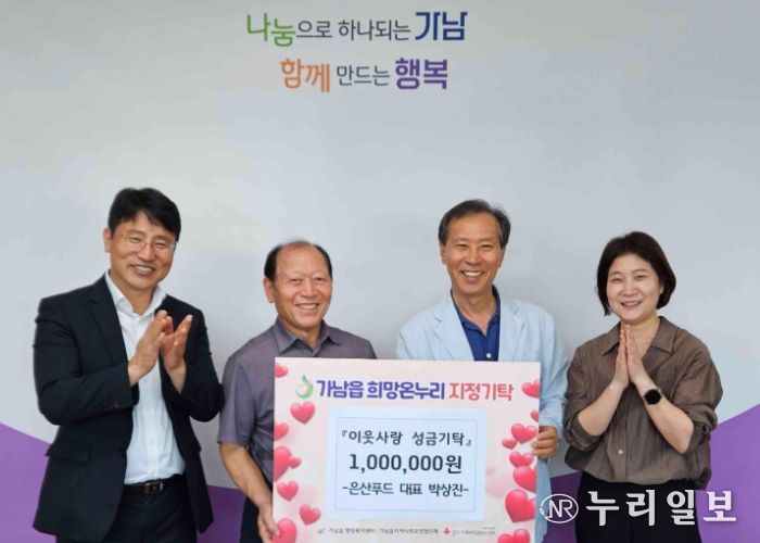 (누리일보) ㈜은산푸드는 지난 26일, 가남읍 행정복지센터를 방문해 어려운 이웃을 위한 이웃돕기 성금 100만 원을 기탁했다.