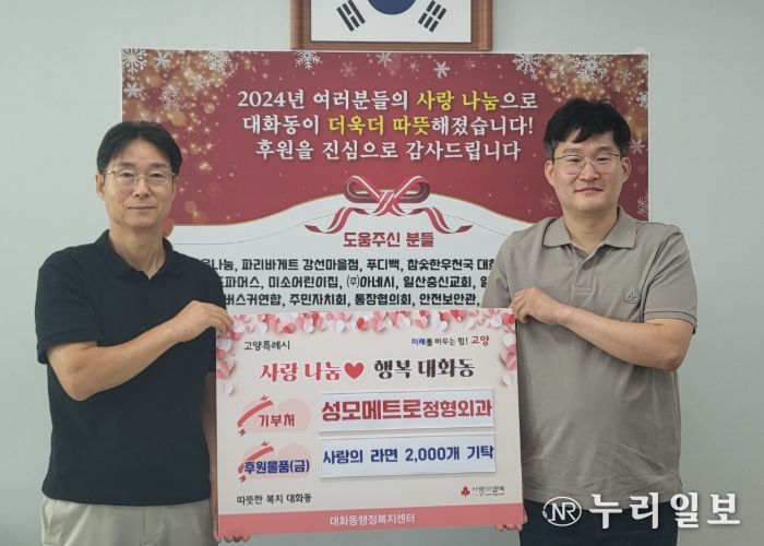 이봉재 대화동장은“지역사회의 소외된 이웃을 위해 따뜻한 나눔을 실천해 주신 성모메트로정형외과에 감사하다”며, “라면 2,000개는 후원자의 뜻에 따라 도움이 필요한 가구에 신속하고 공정하게 전달해 모두가 따뜻한 명절을 보낼 수 있도록 하겠다”고 전했다.