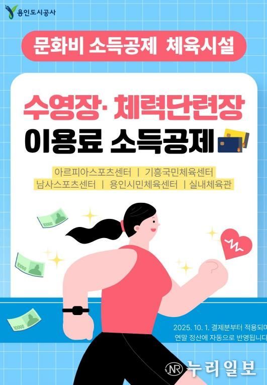 (누리일보) 용인도시공사는 시민들의 건강 증진과 여가 복지 확대를 위해 오는 10월 1일부터 수영장‧체력단련장 시설 이용료와 강습비에 대해 문화비 소득공제 혜택을 적용한다고 밝혔다.