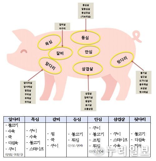 추석 상차림에 빠지지 않는 돼지고기는 갈비찜과 수육(갈비·앞다리 부위), 구이(삼겹살·목심), 산적과 전(안심·뒷다리살)에 두루 응용할 수 있다. 고령자의 담백한 건강식, 아이들 영양식으로 손색없고, 청·장년층이 선호하는 풍미 가득한 구이로 즐길 수 있어 온 세대가 함께하는 명절 음식으로 안성맞춤이다.