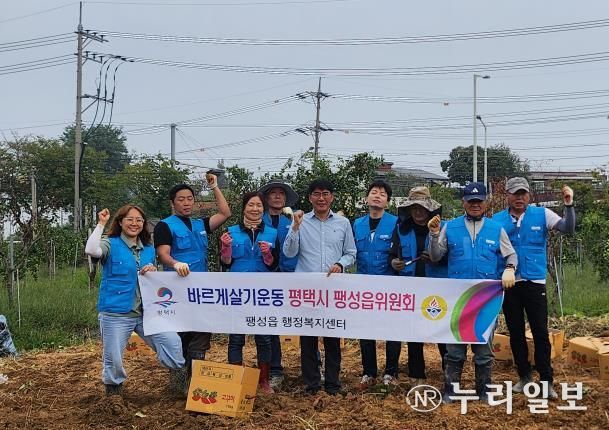 (누리일보) 평택시 바르게살기운동 팽성읍 위원회는 지난달 30일 팽성읍 남산리 77-14 텃밭에서 ‘이웃사랑 고구마 수확 행사’를 진행했다.