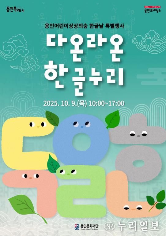 (누리일보) 용인문화재단은 오는 10월 9일, 제579돌 한글날을 기념해 어린이를 위한 특별행사 ‘다온라온 한글누리’를 용인어린이상상의숲에서 개최한고 밝혔다.