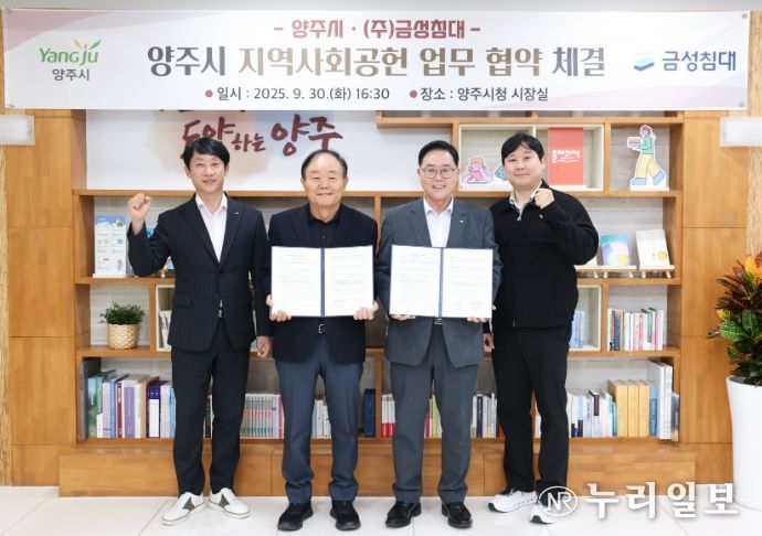 (누리일보) 양주시가 지난 30일 시청 시장실에서 ㈜금성침대와 지역사회공헌 업무 협약을 체결했다.