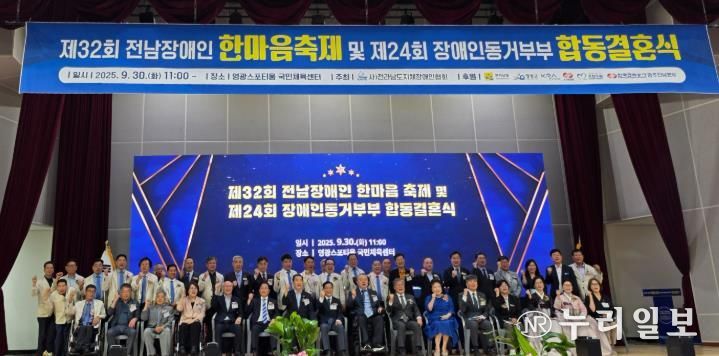 (누리일보) 전라남도는 지난 9월 30일 영광스포티움국민체육센터에서 제32회 전남장애인한마음축제와 제24회 장애인동거부부 합동결혼식을 성황리에 개최했다고 밝혔다.