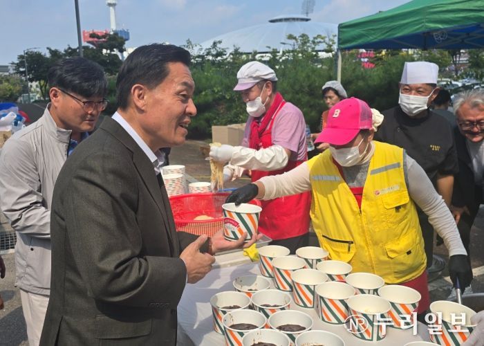 1일 수원종합운동장에서는 코로나19로 중단됐던 밥차 행사가 5년 만에 다시 열려 택시·플랫폼 노동자 등 200여 명에게 따뜻한 짜장면과 탕수육이 제공됐다.