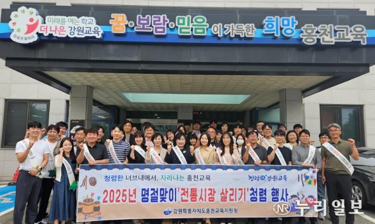 (누리일보) 홍천교육지원청은 10월 1일 홍천전통시장 일원에서 추석 명절을 앞두고 지역경제 활성화와 전통시장 이용 문화 확산을 위해 ‘전통시장 살리기 청렴 행사’를 실시했다.