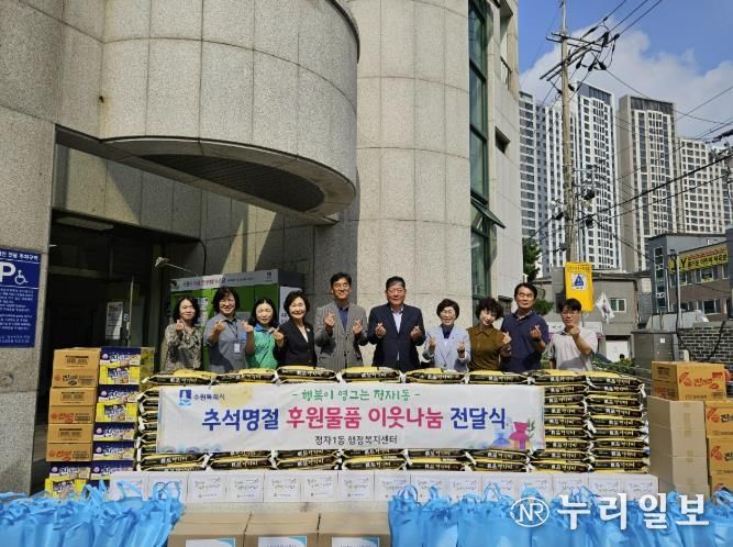 (누리일보) 수원시 장안구 정자1동은 지난 1일, 추석 명절을 앞두고 관내 단체, 기업, 개인 등에서 기탁한 성금과 물품을 어려운 이웃들에게 전달하는 ‘추석 이웃사랑 나눔 전달식’을 개최했다.