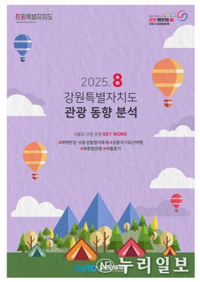 (누리일보) 강원특별자치도와 강원관광재단은 빅데이터 기반의 강원관광 동향분석을 통해 강원특별자치도를 방문한 8월 관광객은 전년 동월대비 2.8%, 전월 대비 20.7% 증가한 약 1,855만 명이라고 밝혔다.