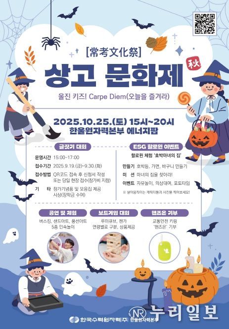 (누리일보) 한국수력원자력(주) 한울원자력본부)는 10월 25일 15시 한울에너지팜에서 제2회 ‘한울 상고문화제 가을(秋)편’ '울진 키즈! Carpe Diem(오늘을 즐겨라)'를 개최한다.