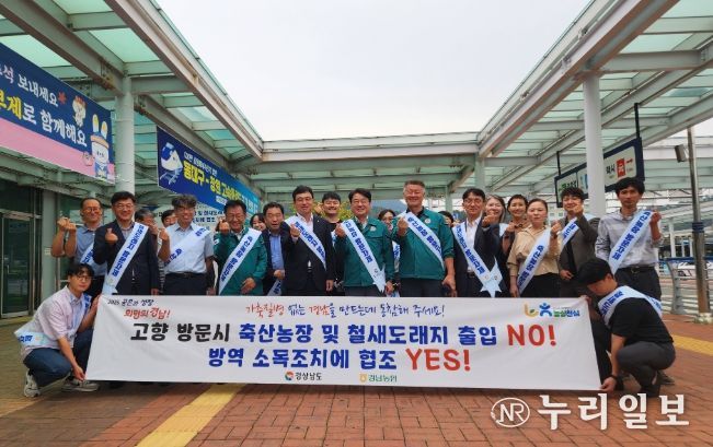 (누리일보) 경상남도는 2일 추석 연휴를 앞두고 귀성객 대규모 이동에 대비하여 창원중앙역에서 경남도, 창원시 가축방역 공무원과 경남농협이 함께 참여해 가축방역 홍보 캠페인을 실시했다고 밝혔다.