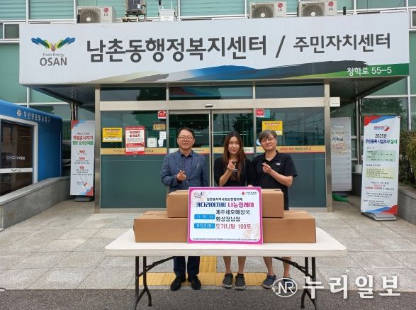 (누리일보) 오산시 남촌동행정복지센터(동장 정찬웅)는 지난 10월 2일, 제주세호해장국 화성정남점(대표 이은정)으로부터 추석 명절을 맞아 취약계층 지원을 위한 도가니탕 100개(120만 원 상당)를 전달받았다고 밝혔다.