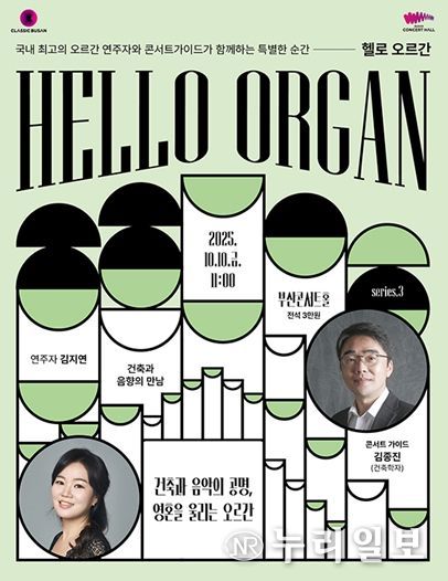 (누리일보) 클래식부산은 내일(10일) 오전 11시, 부산콘서트홀에서 해설이 있는 입문형 오르간 콘서트〈헬로(HELLO) 오르간〉 시리즈의 세 번째 무대 '건축과 음향의 공명, 영혼을 울리는 오르간' 공연을 선보인다고 밝혔다.