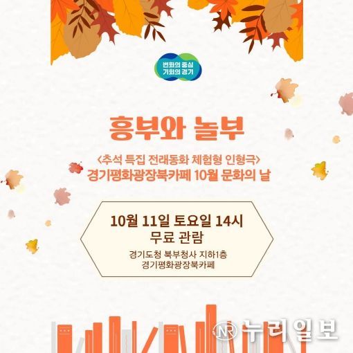 (누리일보) 경기도가 오는 10월 11일 경기평화광장 북카페 원형무대에서 추석 연휴를 맞아 전래동화 인형극 공연 ‘흥부와 놀부’를 공연한다. 이번 행사는 ‘10월 문화의 날’ 프로그램으로, 도민에게 명절의 의미를 되새기고 가족과 함께하는 특별한 시간을 제공하기 위해 기획됐다.