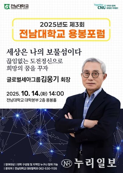 이번 강연은 전남대 학생과 교직원은 물론, 지역민 누구나 참여할 수 있는 공개 포럼 형식으로 진행된다.