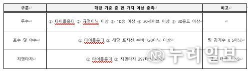 KBO 정규시즌 개인 부문별 1위 선수는 자격요건에 관계없이 기준이 충족된 포지션의 후보로 자동 등록된다. 단, 타이틀홀더에 한해 여러 포지션 출전으로 어느 포지션에서도 수비이닝 기준을 충족하지 못했을 경우, 최다 수비이닝을 소화한 포지션의 후보가 된다. 수비이닝과 지명타자 타석을 비교해야 할 경우에는 각 해당 기준 대비 비율이 높은 포지션의 후보로 등록된다.